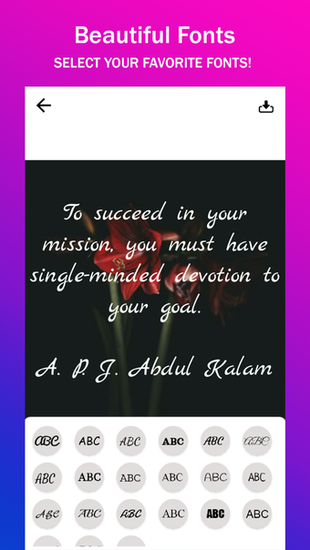 Quotes Creatorは非常に使いやすいアプリです。カテゴリーを選択し、テキストを追加し、背景を選択するだけで、簡単に作成できます。写真を追加して、ギャラリーに保存することもできます。