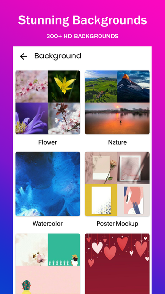 さまざまな背景が用意されています。アプリから背景を選択して、ギャラリーに保存することができます。